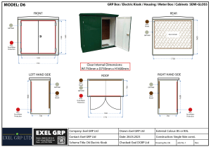 The D6 GRP Electric Kiosk is a heavy-duty, UK-manufactured double-door electrical enclosure designed for substations, LV panels, distribution equipment, metering systems and infrastructure installations. Manufactured from high-strength Glass Reinforced Plastic (GRP), this outdoor cabinet delivers long-term durability, corrosion resistance and weather protection in demanding environments.